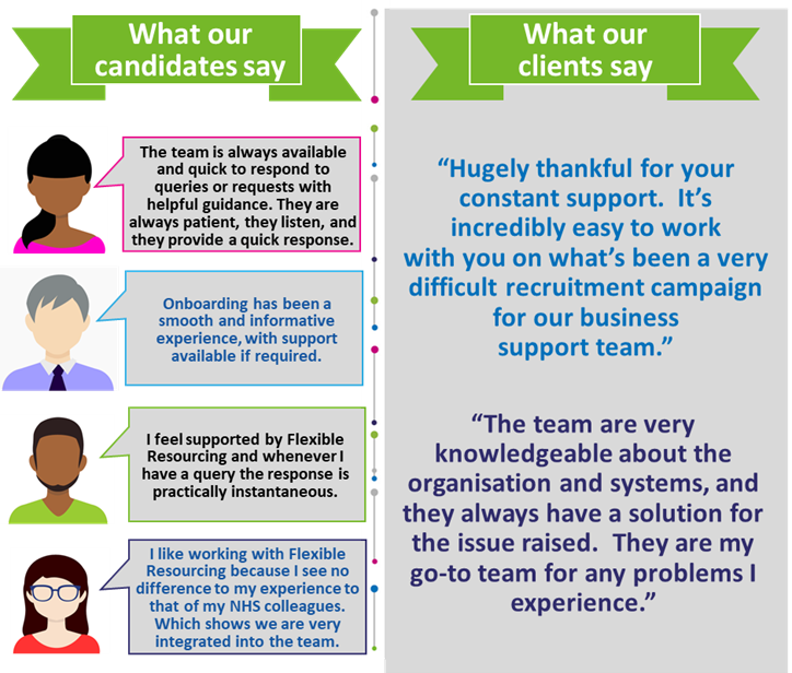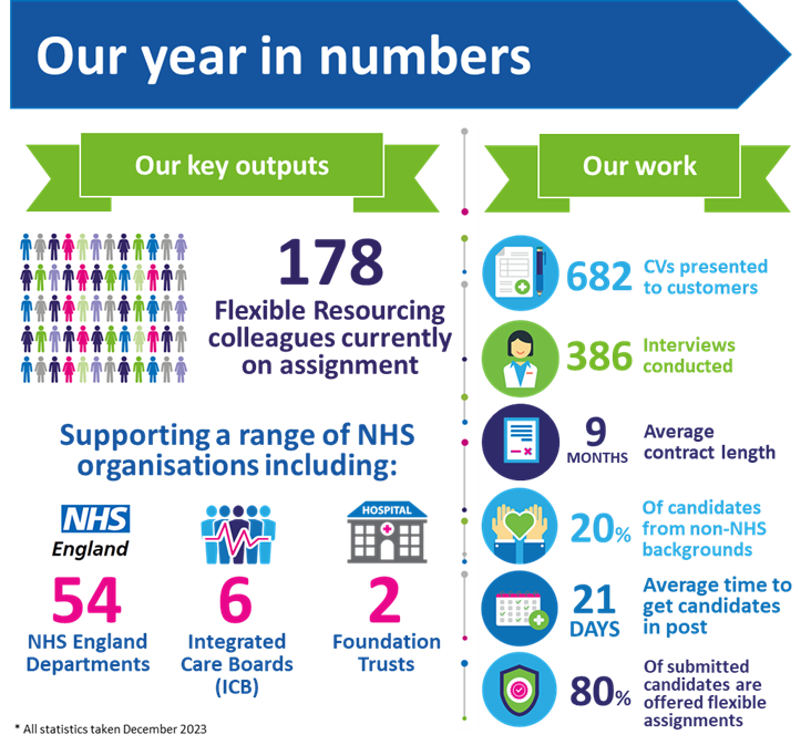 We work with a range of NHS organisations including NHS England, Integrated Care Boards and Provider Trusts who use Flexible Resourcing to deliver: