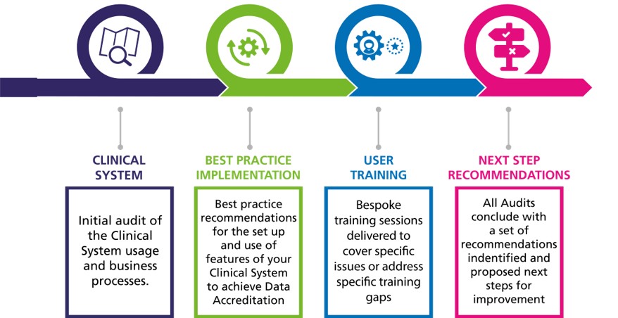 Effective use of your Clinical System within your Practice provides an opportunity to deliver significant efficiency gains. Our team of Clinical Systems experts provide Data Accreditation services that incorporate training, data quality, best practice and individually tailored support. This clinical and administrative refresh of your Clinical System is delivered at both an audit level of ‘use’ and at a training level, which helps support Data Accreditation being achieved.