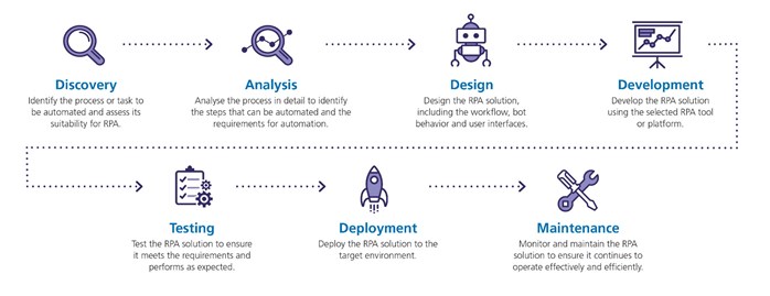 We follow a proven ‘lifecycle’ approach to RPA, working in close partnership with clients at each of the seven stages, to ensure solutions are fit for purpose and deliver the desired benefits.